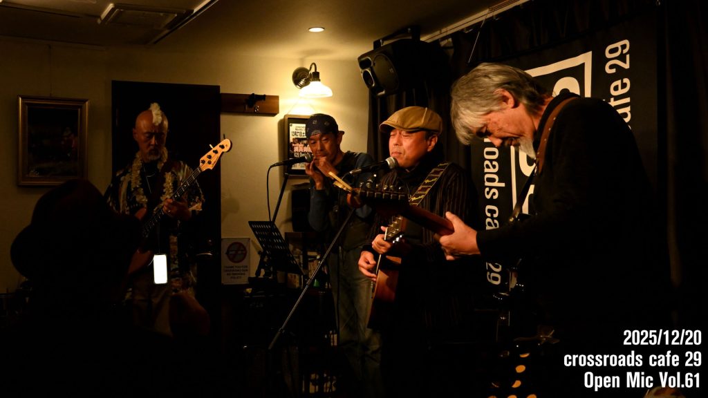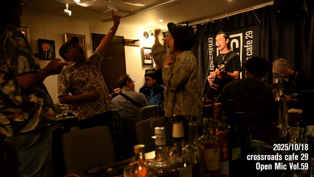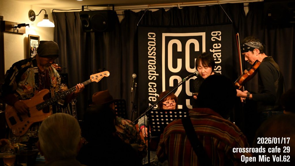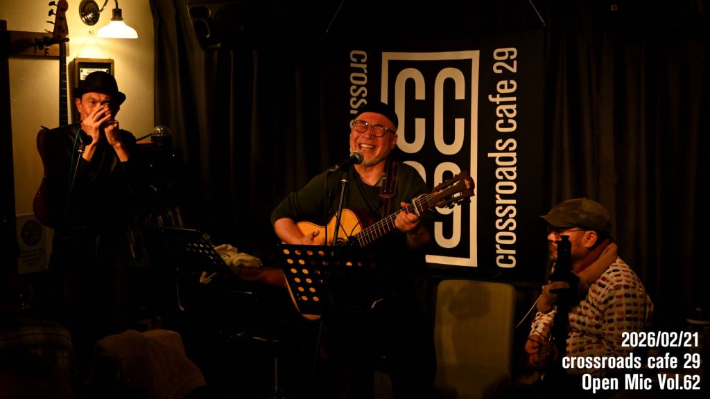 crossroads cafe 29 では毎月の第三土曜日に オープンマイク を開催しています。参加者の皆様が楽器を持ち寄り、お互いの演奏を楽しんでいます。皆さん普段の練習の成果を披露する機会として楽しんでいただいています。ライブを開催するような方から、楽器を始めたばかりで人前で演奏するのは初めてというような方々まで、参加者全員でお互いの演奏を楽しめる機会になれば良いなと考えて開催しています。
